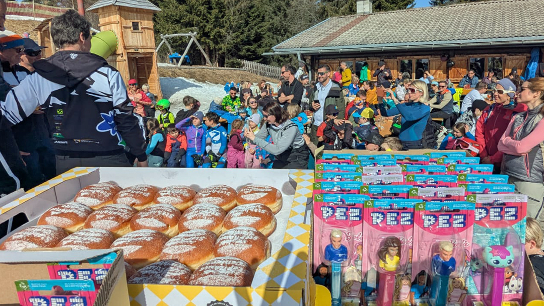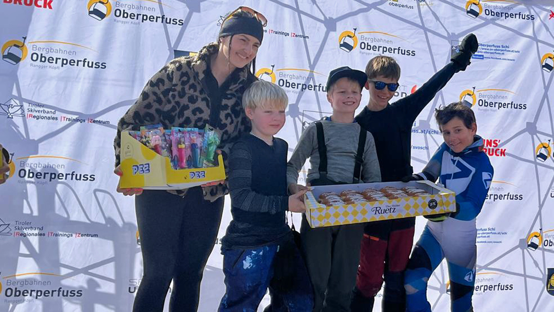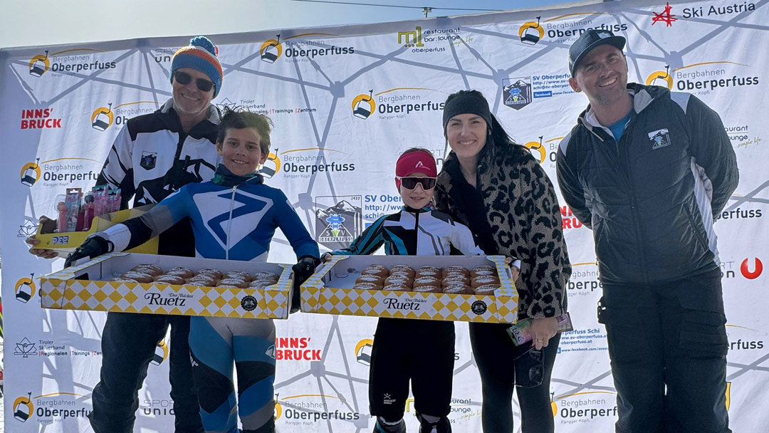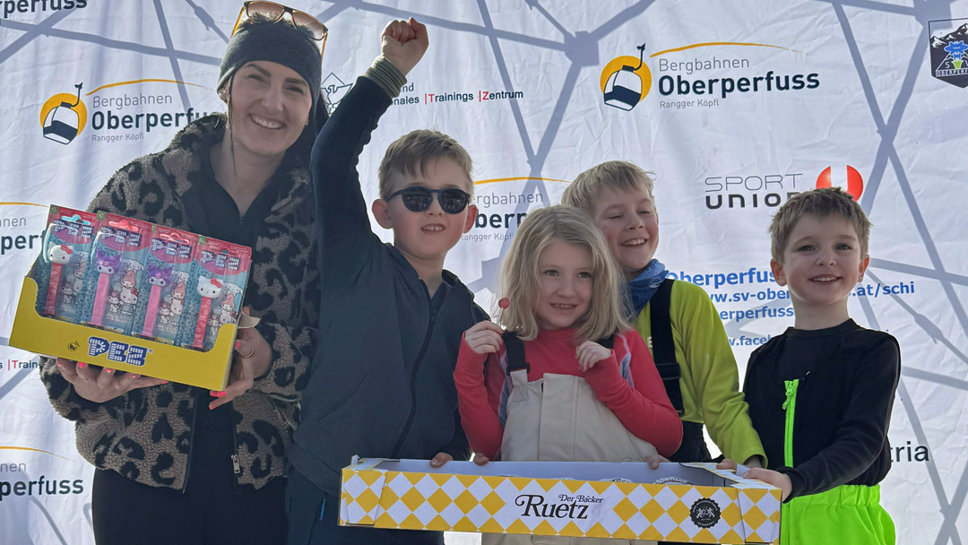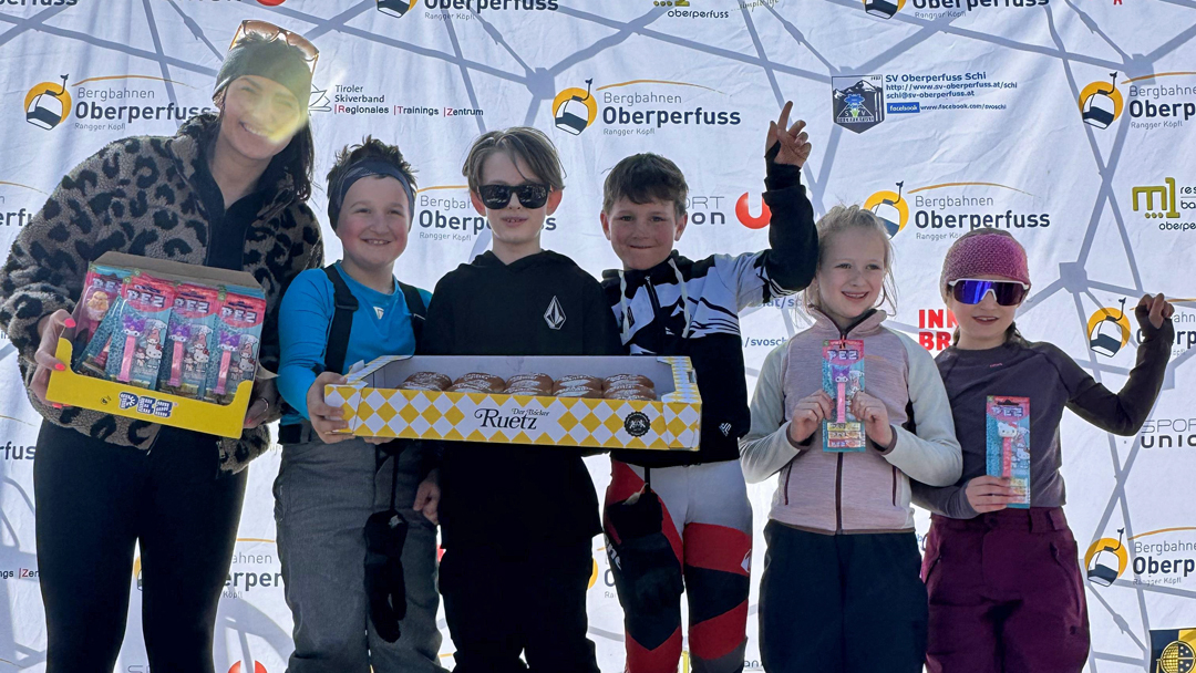 Am heutigen Samstag wurde bei traumhaftem Sonnenschein der VENIERcup der Volksschulen Oberperfuss am Rangger Köpfl durchgeführt. Dieses Highlight für die Kinder der Volksschulen Oberperfuss Dorf und Oberperfuss Berg bildet den jährlichen Abschluss für unser gemeinsames Schiprojekt „Oberperfuss fährt Schi“ welches den Winter hindurch den Kindern am Nachmittag das Schifahren ermöglicht. Dabei helfen die Kooperationspartner SV Oberperfuss Schi, die Bergbahnen Oberperfuss, die Schischule Kleissl Hannes und natürlich alle Lehrer und Lehrerinnen zusammen und verlegen einen Teil der Turnstunden auf die Piste. Unter der Aufsicht von Weltmeisterin & Projektpatin Stephi Venier, Rennleiter Venier Mario (Papa) wurde diesmal Premiere auf der der VENIER Goldpiste gefeiert! Der selektiv ausgeflaggte Riesentorlauf wurde anschließend Klassenweise (Schulklasse 😉) gemeinsam befahren und zusammen als Schulklasse eine Zeit gerechnet (die top3 Zeiten). Als Preise erhielten alle Kinder eine Palette eigens kreierte Venierkrapfen vom Bäcker Ruetz und zusätzlich noch Goodies von PEZ Österreich! Die „schnellste Klasse“ aus Oberperfuss wurde diesmal die Klasse 4b der VS Dorf, welche sich sodann die eigens kreierte Torflagge für ihr Klassenzimmer sicherte. Die schnellste Damen Zeit sicherte sich Clea TRIENDL der 2a Dorf, die schnellste Herren Zeit Neo HUJARA der 4a Dorf.